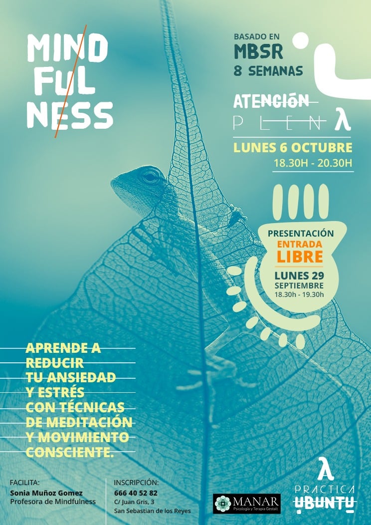 Las sesiones serán de dos horas cada lunes de 18:30 a 20:30. En cada sesión exploraremos los diferentes contenidos…que es mindfulness, que es el piloto automático, la red por defecto, como nos relacionamos con nosotros-as mismas…